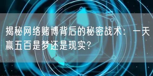 揭秘网络赌博背后的秘密战术:一天赢五百是梦还是现实?