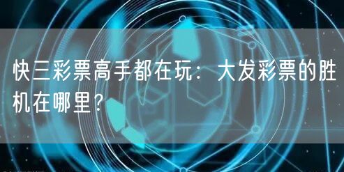 快三彩票高手都在玩:大发彩票的胜机在哪里?